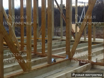 Артём Менеджер Артём Приветствую! МО, Клинский район, поселок Матвеево. Строительство каркасного дома по очень распространенной в этом году комплектации с наружной, но без внутренней отделки. И так, дом 12,5х9 по каркасной технологии. Основа каркаса - доска 40х150 камерной сушки, как и весь пиломатериал на комплект дома, обработанная биозащитным составом на производстве. Установка свайно-винтового фундамента была осуществлена в момент поставки дома. Александр Федорович в перспективе планировал утепление каркаса в 200 мм, именно по этому, перед основным утеплением смонтировано перекрестное в 50 мм. Наружная отделка дома – имитация бруса 17х140 мм. Кровля из металлочерепицы. Окна – деревянный двухкамерный стеклопакет, окрашенный в красивый цвет «Венга». Всегда эти окна, нашего производства, служат украшением дома.