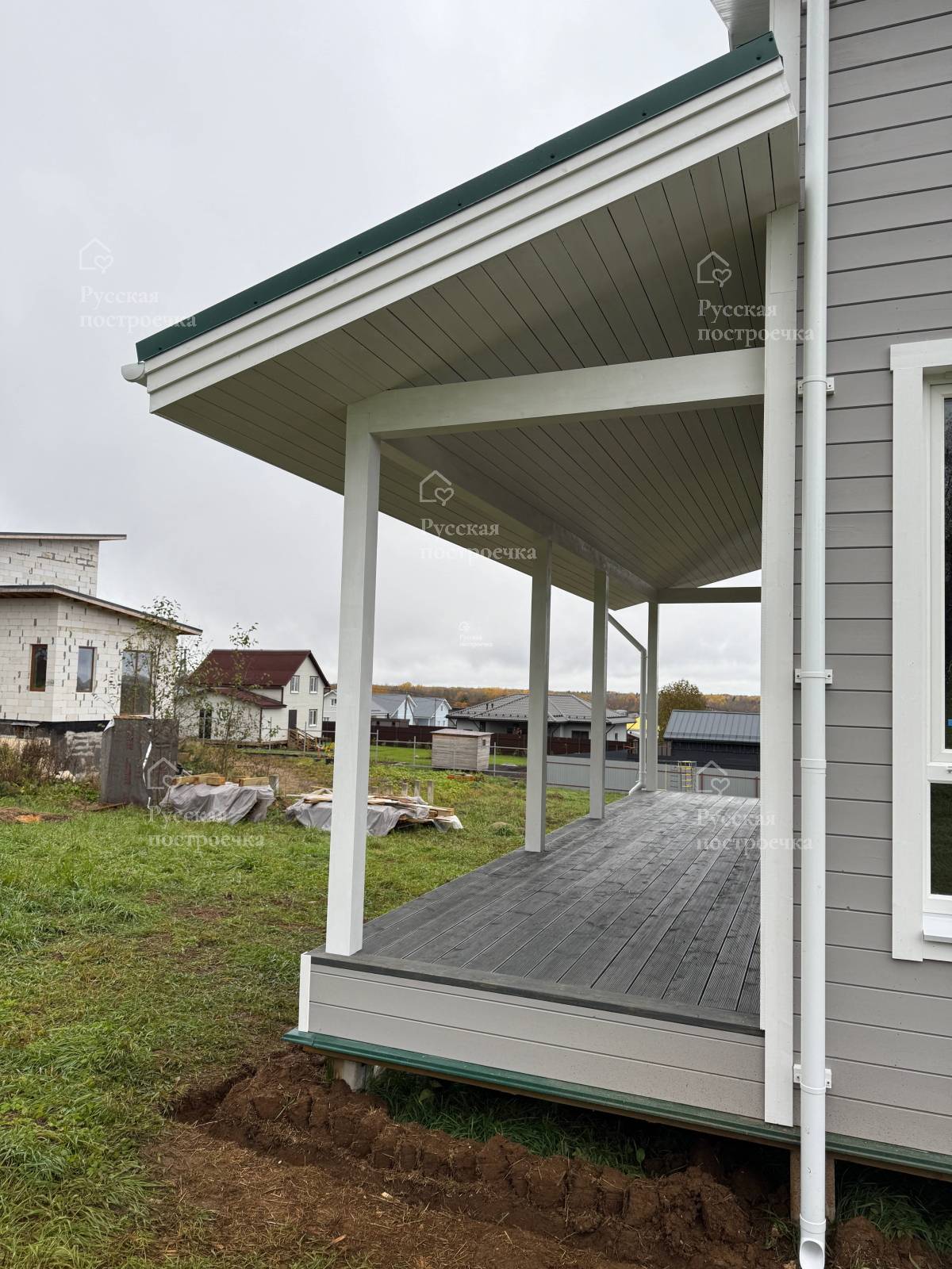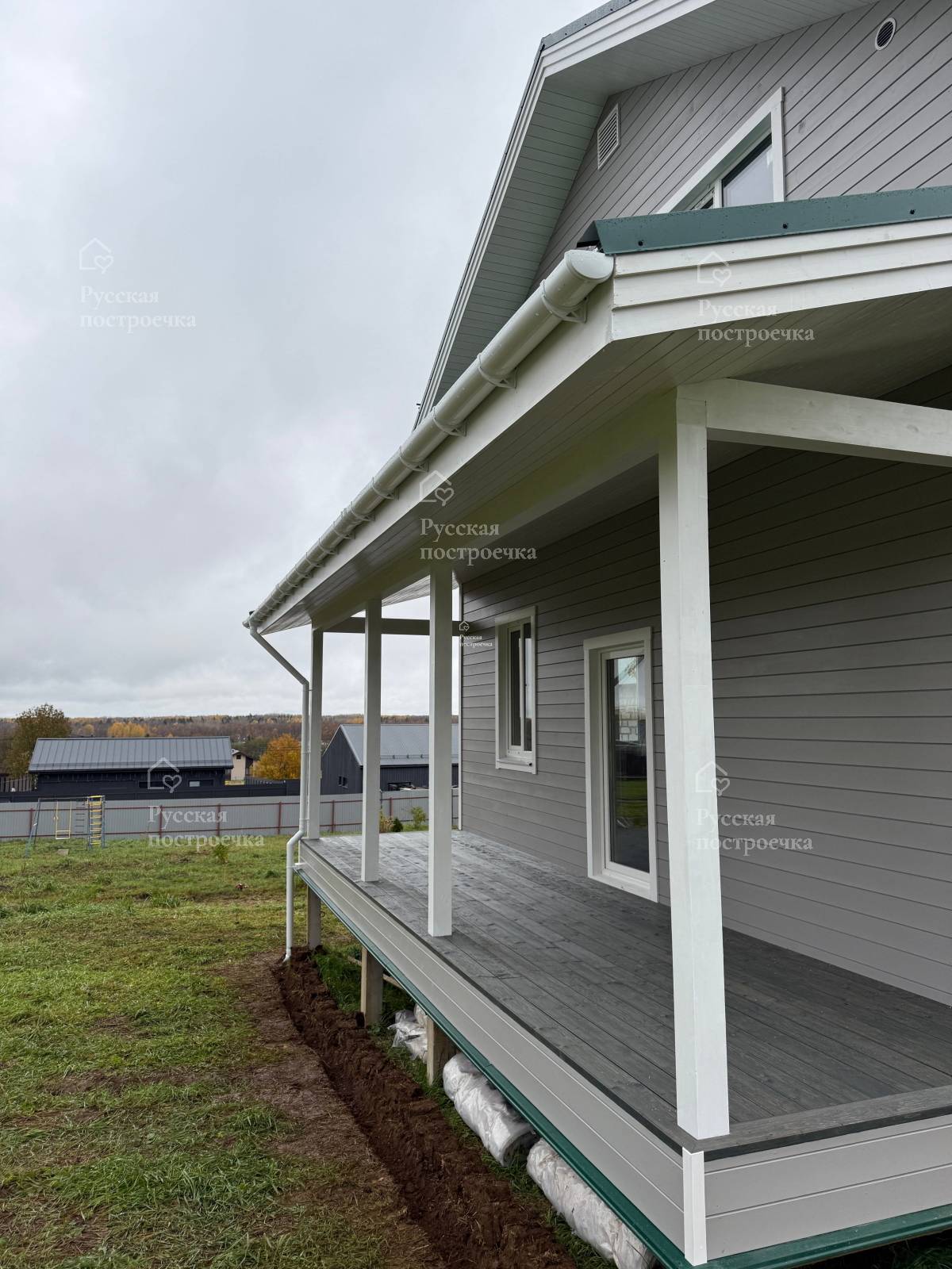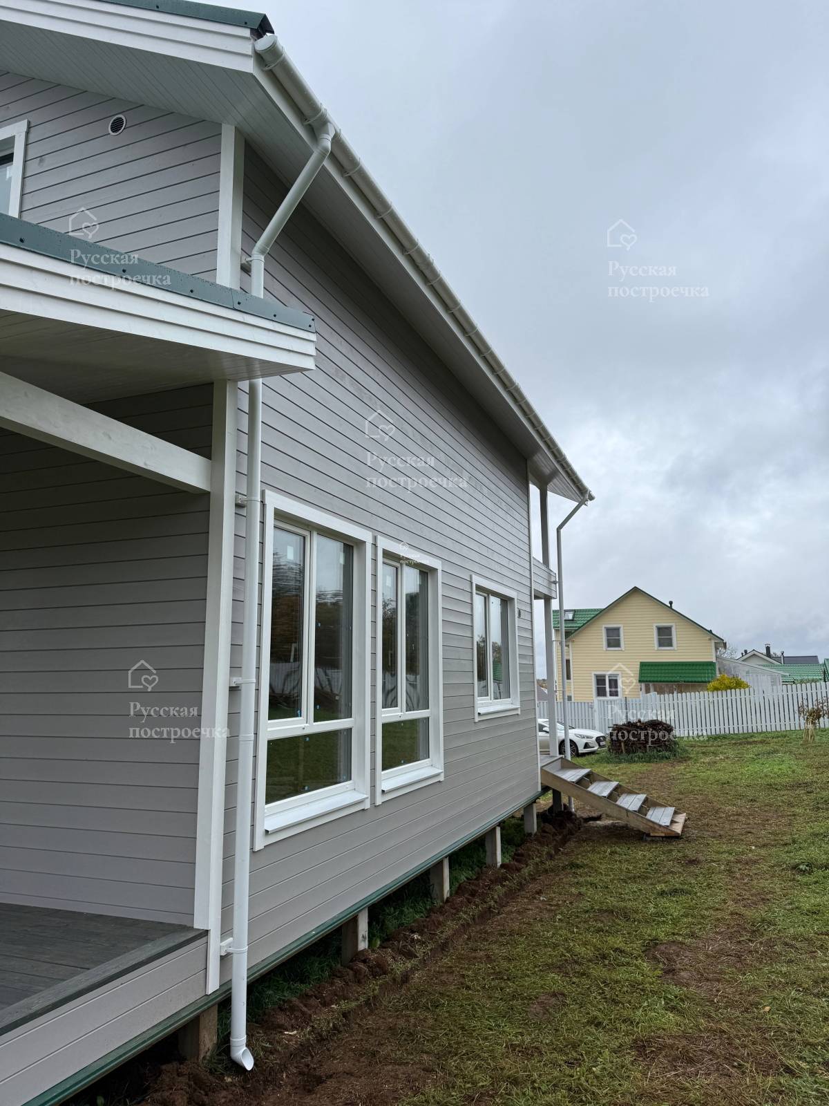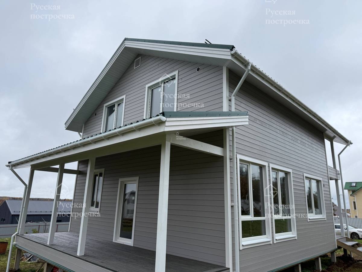 Артём Менеджер Артём Приветствую! Ропша, Ленинградская область. Каркасный дом 8,0×12,0 возведён на железобетонных сваях. Силовой каркас внешних стен — строганный брус 40×150±5 мм камерной сушки.