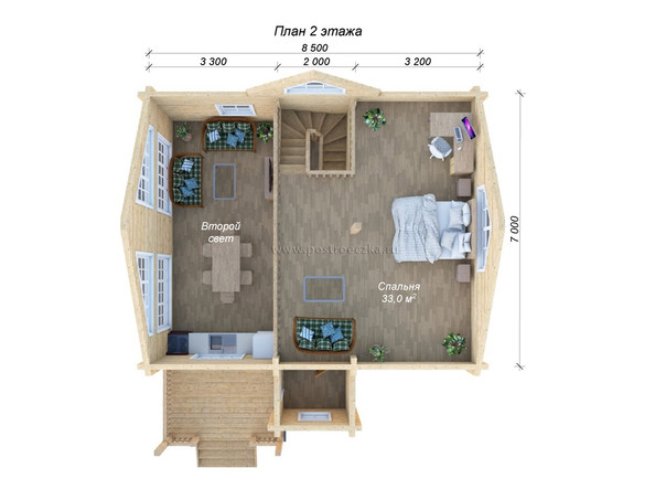 | В том случае, если дом с мансардой или со вторым этажём. Первый этаж и мансарду соединяет лестница (она может быть: одномаршевая, двух маршевая, П-образная и тд). Отделка лестницывы полнена из массива соны класса "А": ступени, тетива, перила – резные, балясины – точеные, устанавливаются стартовые столбы. По желанию заказчика лестница может быть изготовлена из других пород древесины. | Точную стоимость уточнять у менеджеров |