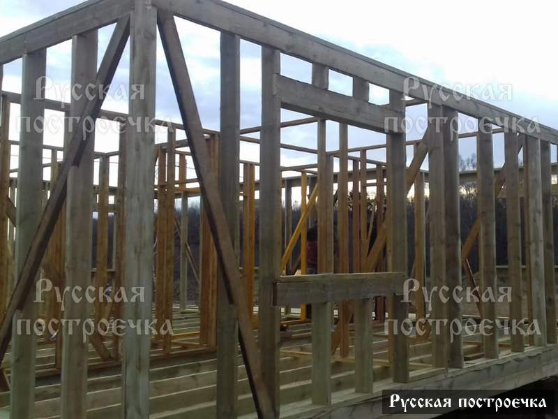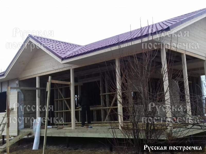 Артём Менеджер Артём Приветствую! МО, Клинский район, поселок Матвеево. Строительство каркасного дома по очень распространенной в этом году комплектации с наружной, но без внутренней отделки. И так, дом 12,5х9 по каркасной технологии. Основа каркаса - доска 40х150 камерной сушки, как и весь пиломатериал на комплект дома, обработанная биозащитным составом на производстве. Установка свайно-винтового фундамента была осуществлена в момент поставки дома. Александр Федорович в перспективе планировал утепление каркаса в 200 мм, именно по этому, перед основным утеплением смонтировано перекрестное в 50 мм. Наружная отделка дома – имитация бруса 17х140 мм. Кровля из металлочерепицы. Окна – деревянный двухкамерный стеклопакет, окрашенный в красивый цвет «Венга». Всегда эти окна, нашего производства, служат украшением дома.