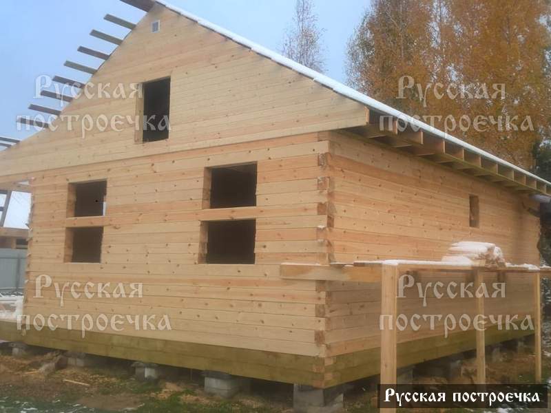 Артём Менеджер Артём Приветствую! Уважаемый Вячеслав Дмитриевич, владелец дома 8х8 м, спасибо Вам за доверие и приятное общение, на протяжении всего процесса строительства. Дом из бруса 140х140 естественной влажности на опорно-столбчатом фундаменте мы построили в МО, КП «Зеленые дали». Пол и потолок с утеплением в 100 мм рулонным утеплителем «KNAUF Insulation». Окна и межкомнатные двери базовой комплектации деревянные без установки на время усадки колодца дома. Во все оконные и дверные проемы установили «ройки». Кровля по акции из металлочерепицы, входная дверь металлическая. Отдельные слова благодарности хочется сказать за радушный прием бригады строителей. Доброго здоровья и долгих лет Вам, уважаемый Вячеслав Дмитриевич.