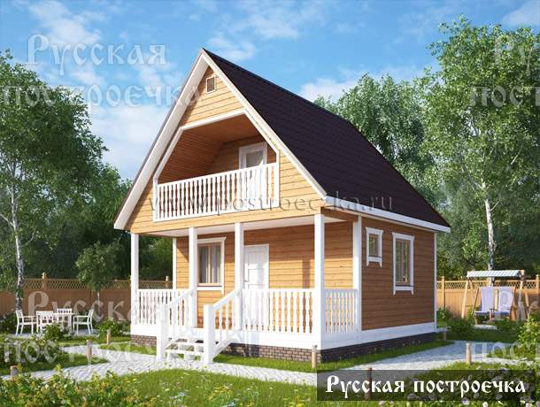 Недорогой каркасный дом, в котором реализована широкая 6-метровая терраса. Благодаря этому элементу обычная постройка становится более красивой и презентабельной.